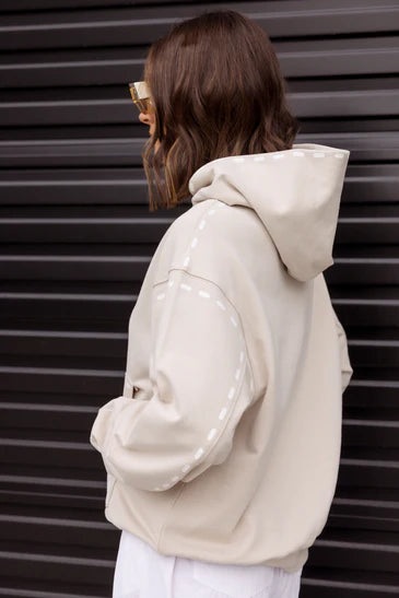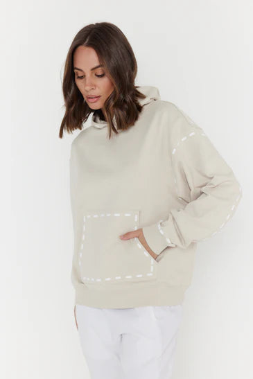 The Alexandra Dashes Jumper exudes understated sophistication with its contrast dash graphic detailing on the hood, pocket, wrist, and upper arm. Featuring dropped shoulders and a relaxed fit through the body and sleeves, it delivers effortless elegance and comfort. Ribbed trims at the cuffs and hem provide a polished finish, complemented by the timeless kangaroo front pocket. Crafted from 100% premium mid-weight cotton, this jumper offers both refined texture and enduring quality for a stylish wardrobe staple.