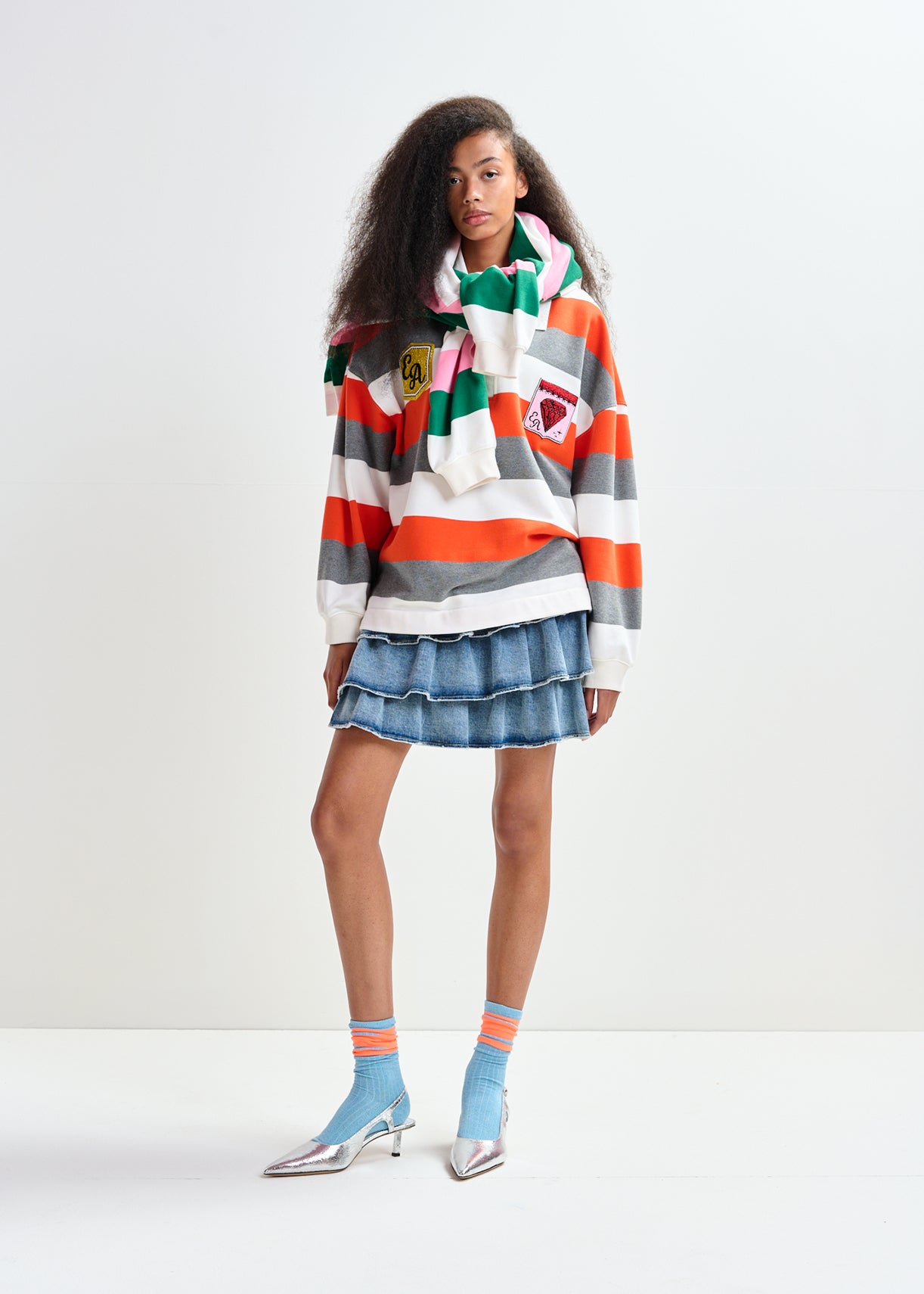 This striped sweatshirt from Essentiel Antwerp brings effortless cool to your everyday rotation. The cotton-blend fabric keeps things comfy, while the relaxed silhouette and dropped shoulders let you move freely. Playful appliquéd patches add personality to the front, and classic ribbed trims frame the neckline and cuffs. Double stitching means this piece is built to last through countless wears and washes. Perfect for those days when you want cozy style without trying too hard.
