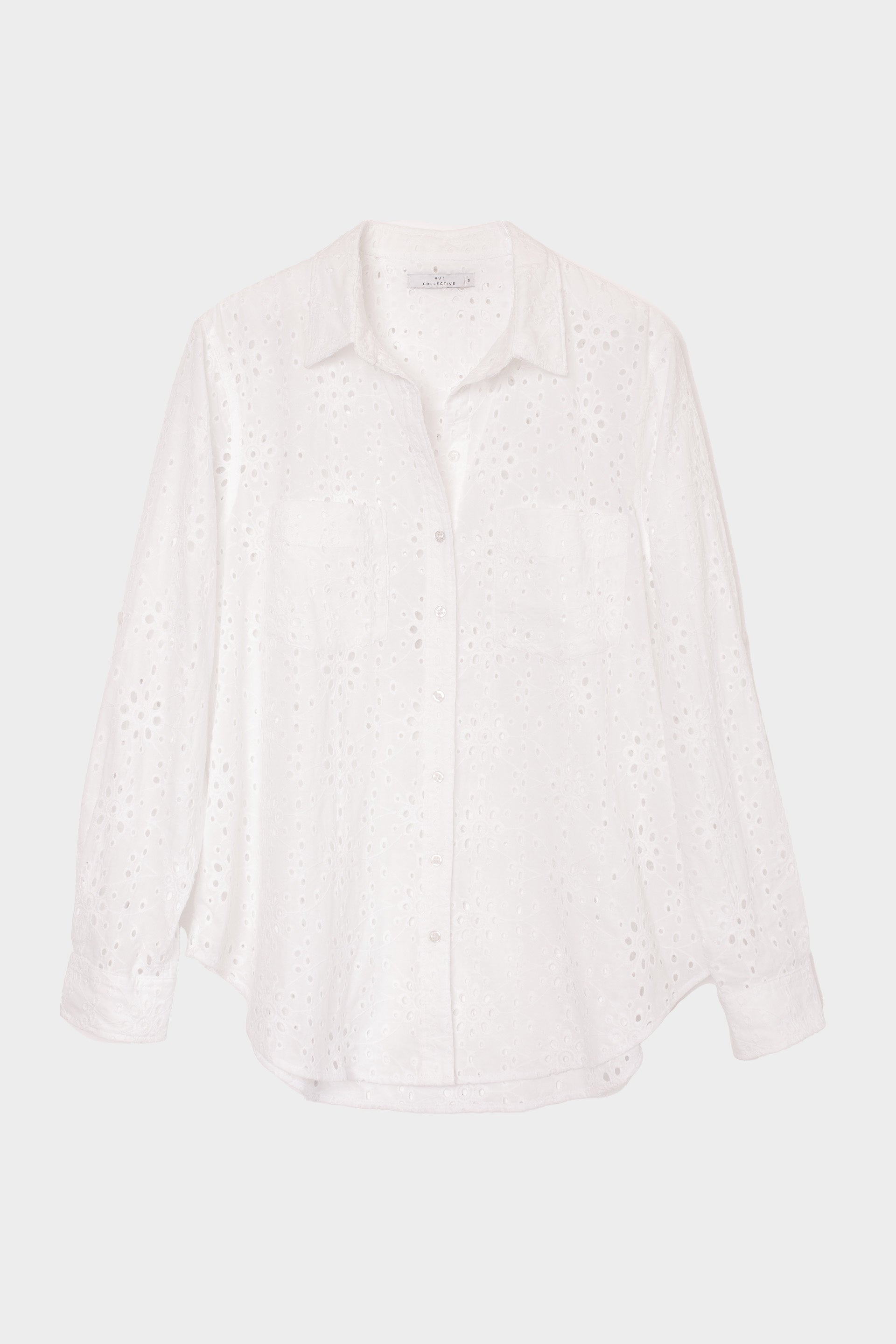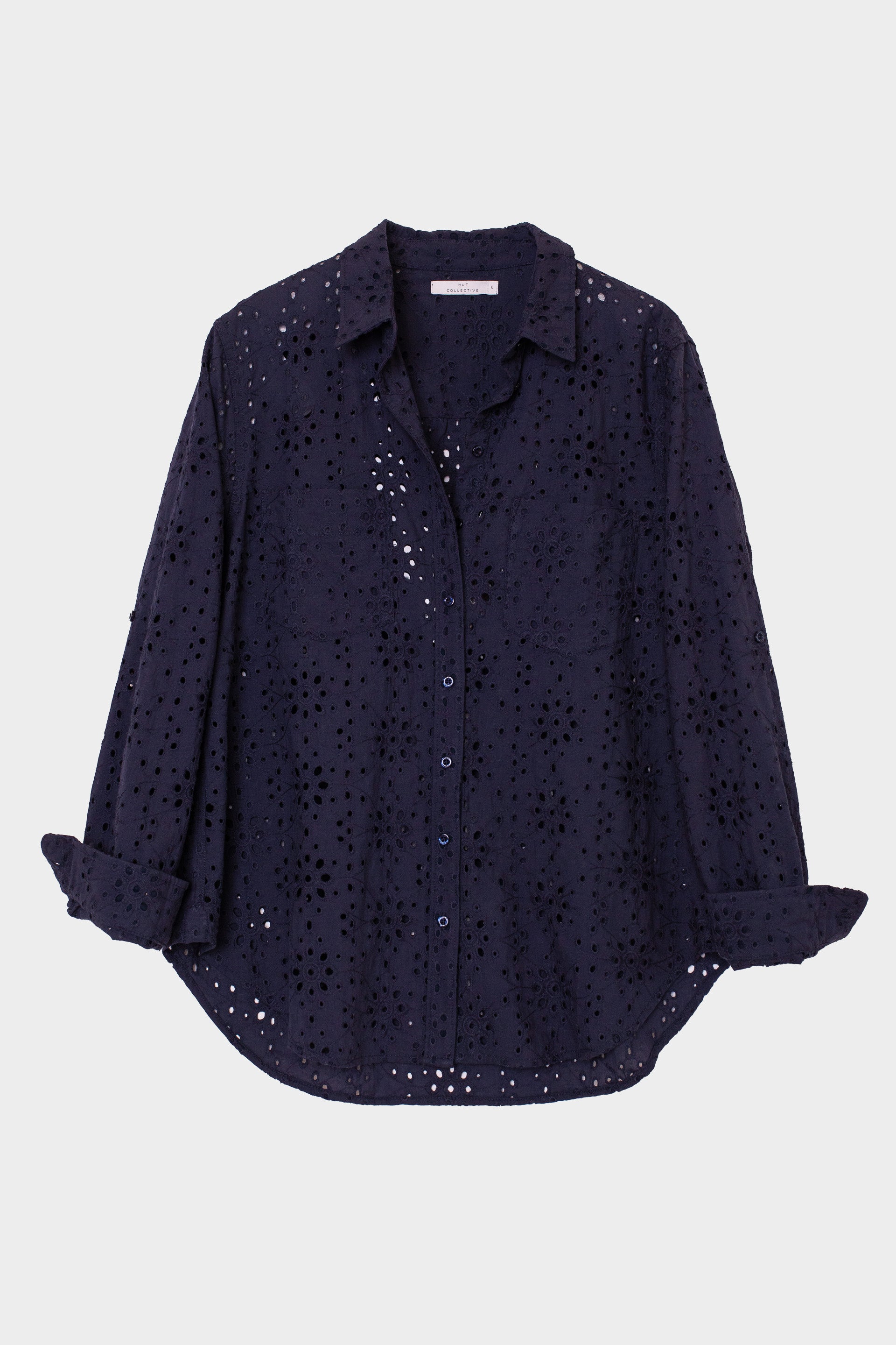 Made from 100% Cotton. The Broderie Shirt is a smaller fit compared to the popular Hut Boyfriend Shirt. It is very true to size and was designed for a more feminine fit.