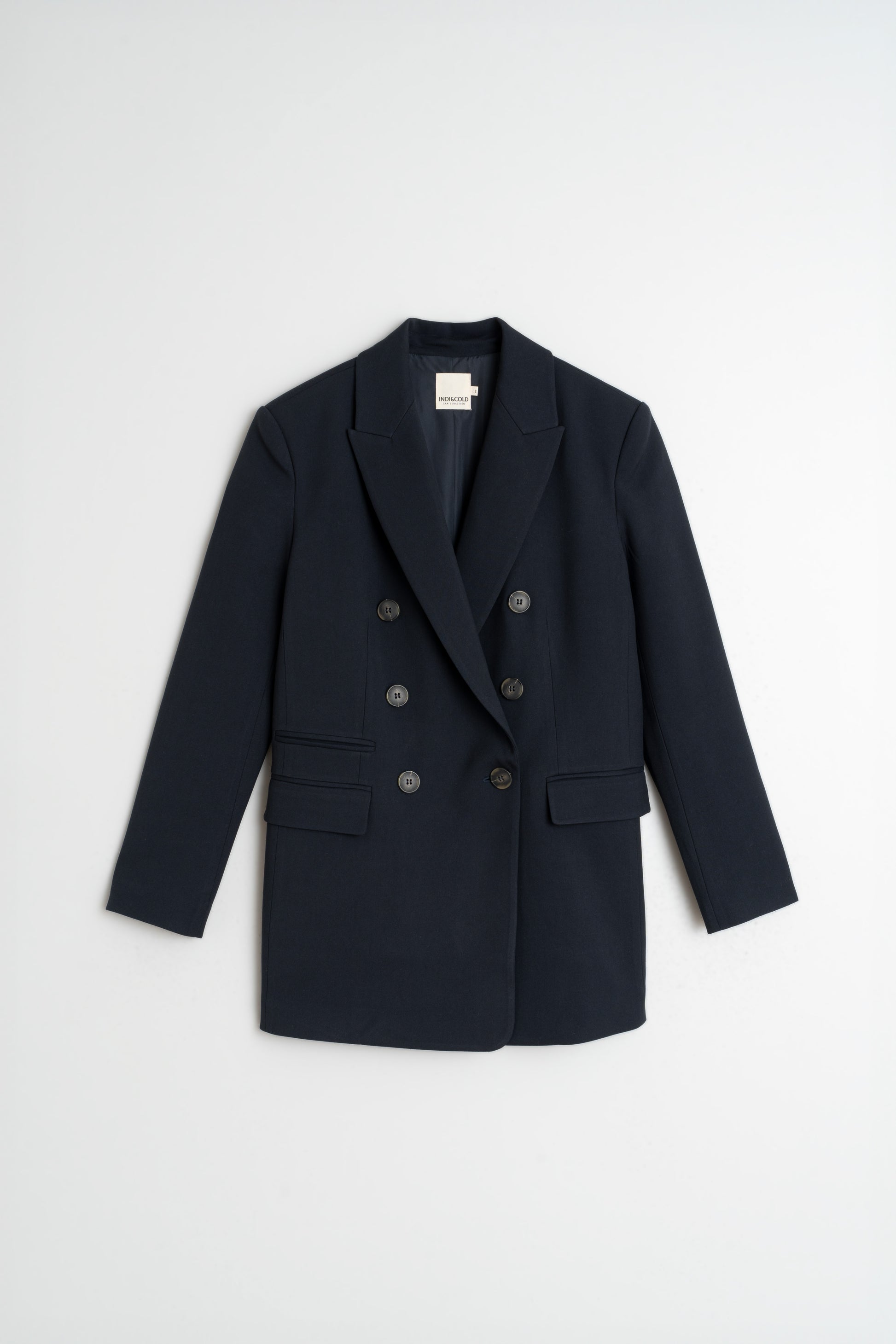 Command presence in this oversized double-breasted blazer that channels power through deliberate proportions. Fitted shoulders anchor the voluminous silhouette while the structured lapel collar and crossover front create architectural drama. Buttoned closure adds polish to this fearless take on classic tailoring—wear it loud.