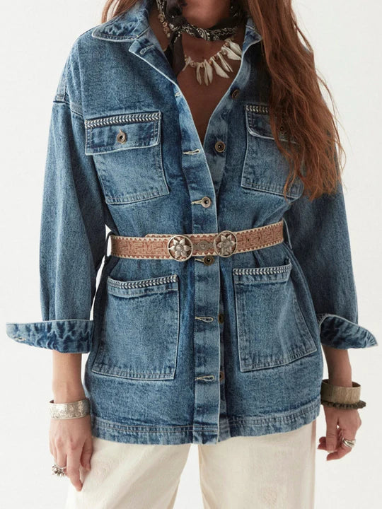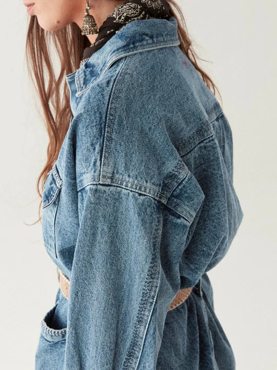 The Wayne Jacket in Western Blue by Maison Hotel is crafted from premium cotton denim, exemplifying rugged elegance. Featuring a slightly oversized fit and broad sleeves, this jacket challenges traditional designs with its distinctive silhouette. The white stitching along the edges is not just decorative but a testament to meticulous craftsmanship. An adjustable, removable belt allows you to customize the fit, tailoring the shape to your preference. Combining comfort and bold style, the Wayne Jacket is an essential piece that confidently elevates any wardrobe.