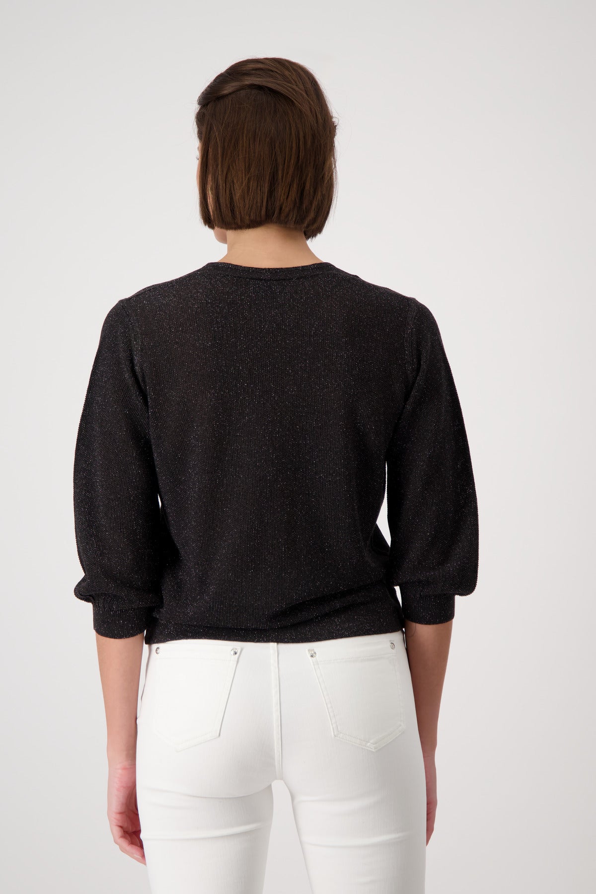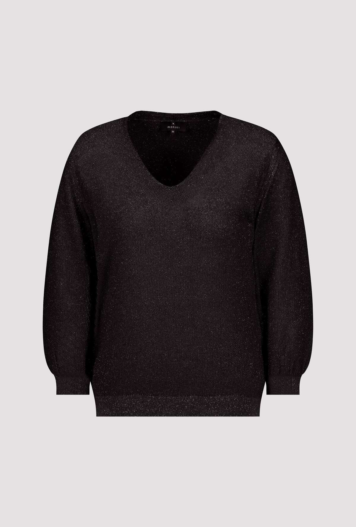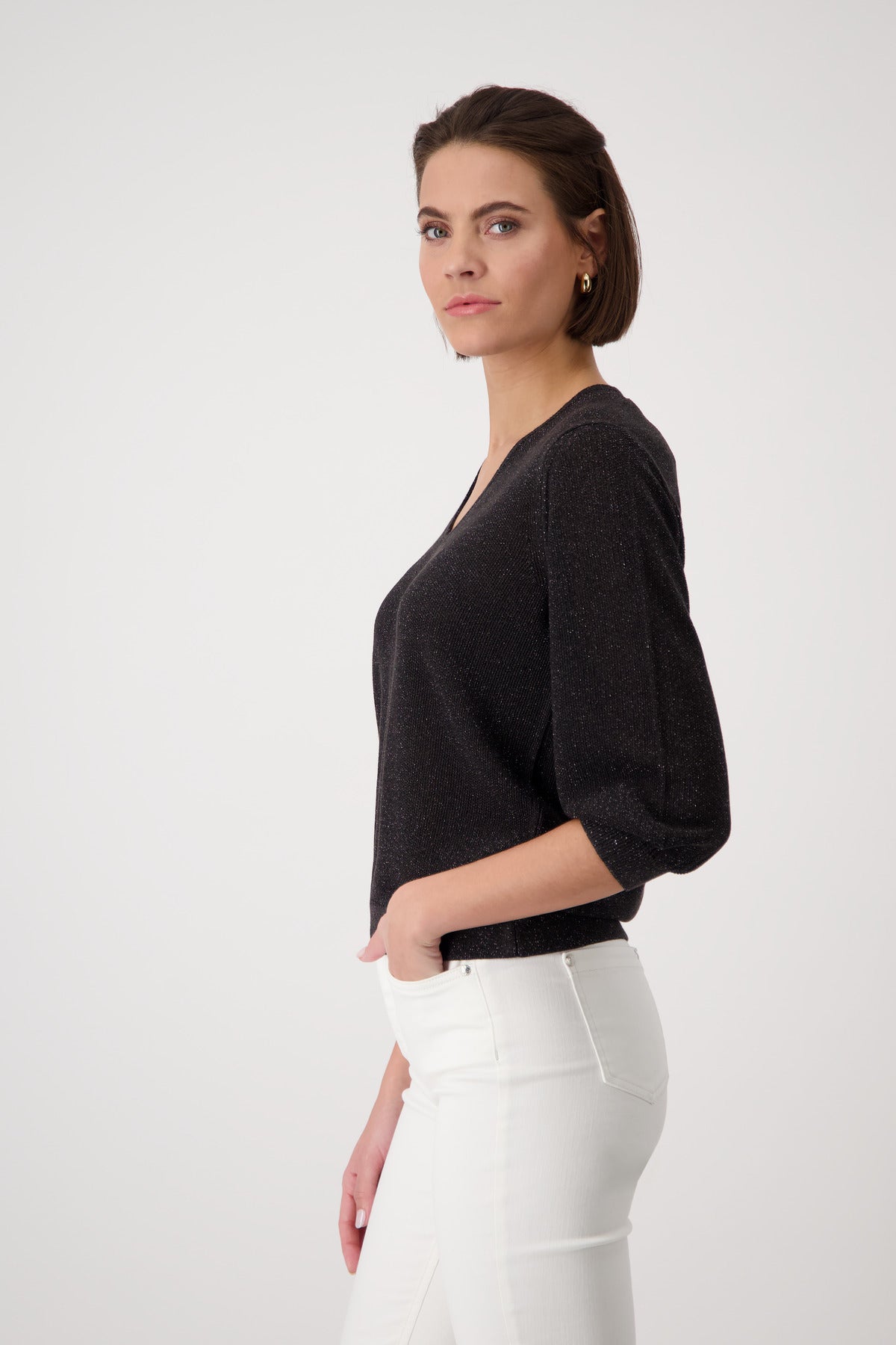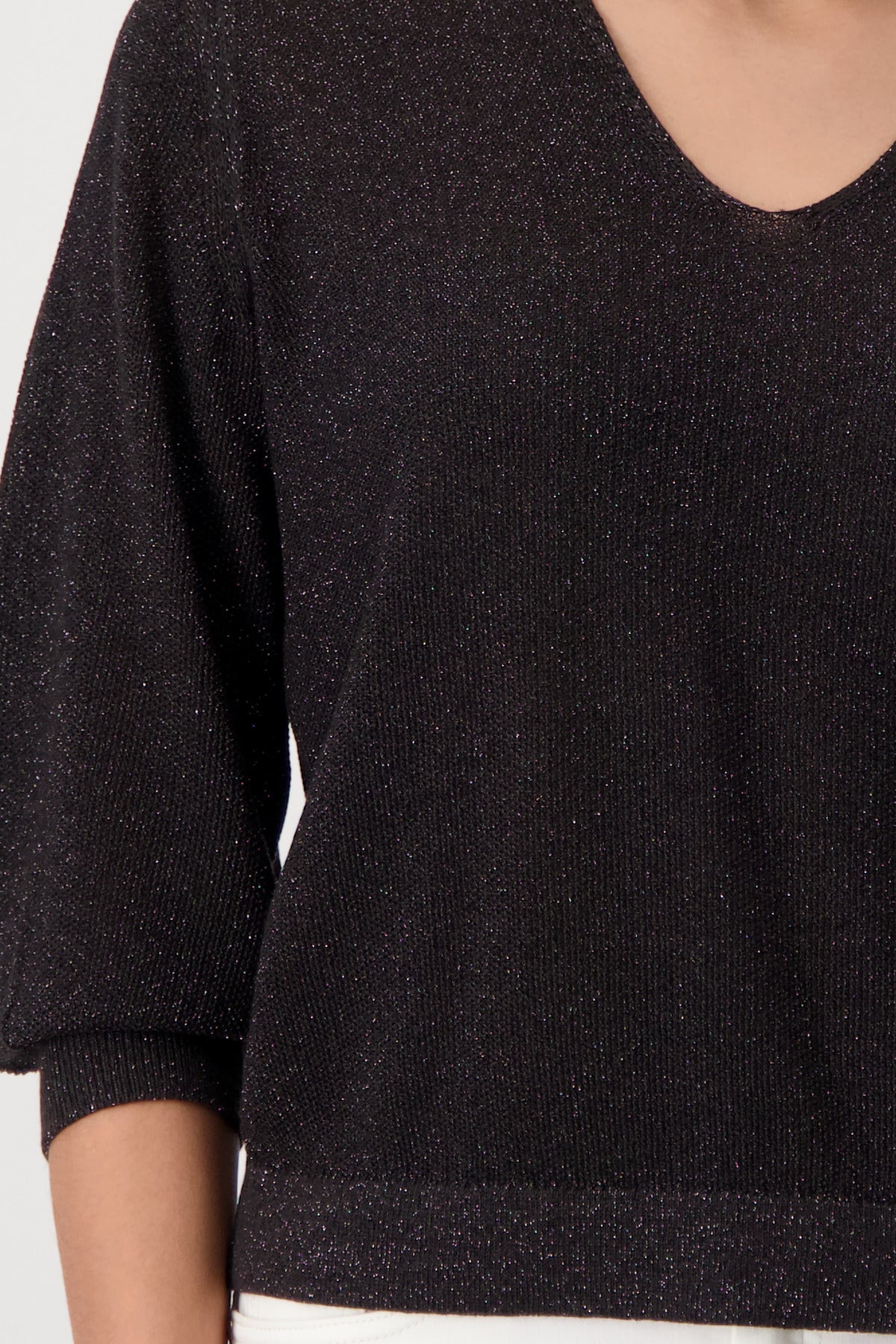 This lurex jumper is a regular fit with a V-neckline and three-quarter length sleeves, combining subtle sparkle with classic comfort.