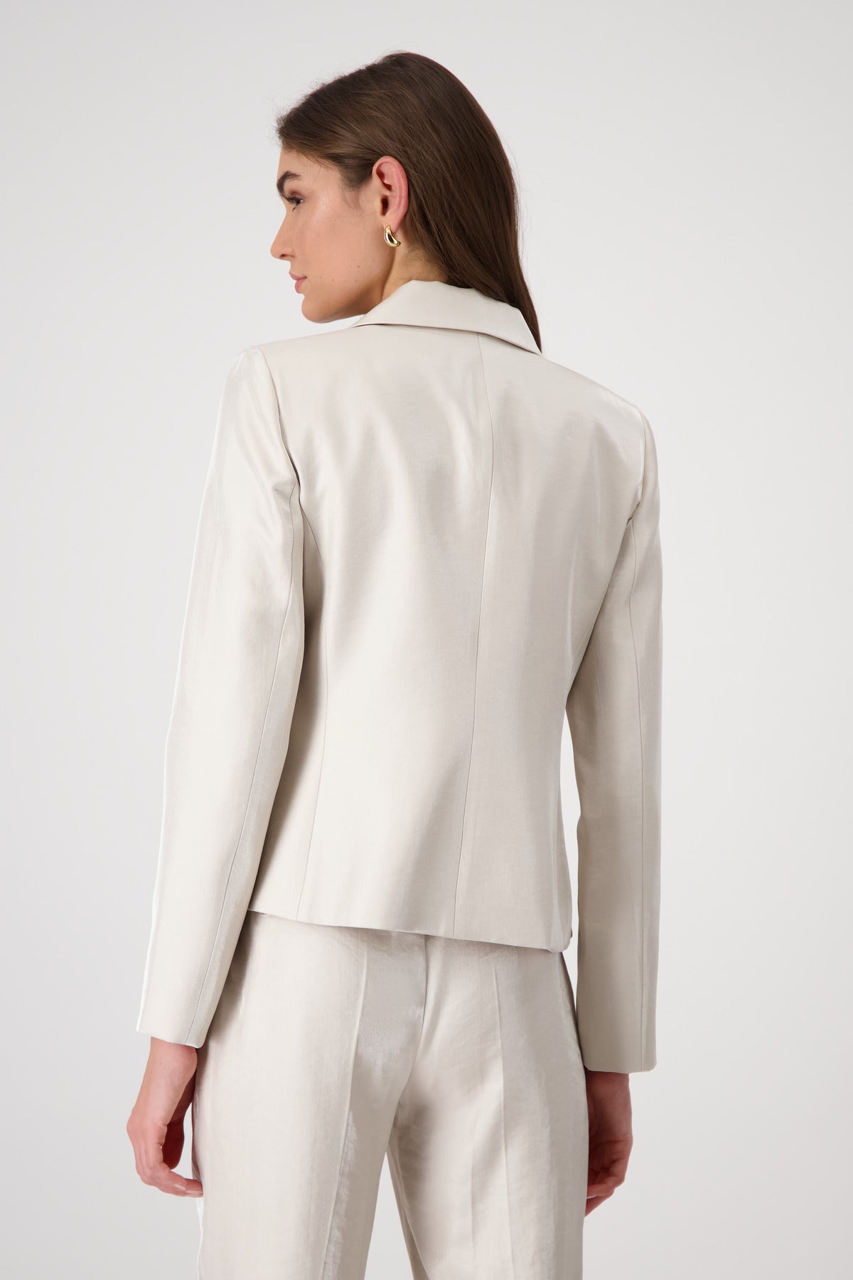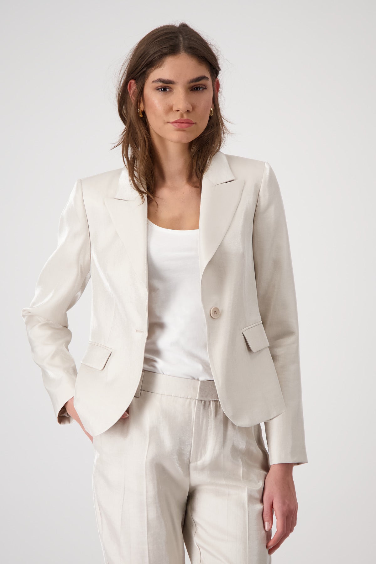 Crafted from satin with a hint of stretch, this blazer has a regular fit and features a lapel collar, long sleeves, and a button placket. Designed with fake flap pockets and a front that extends slightly longer, it brings a sophisticated and polished element to any ensemble.