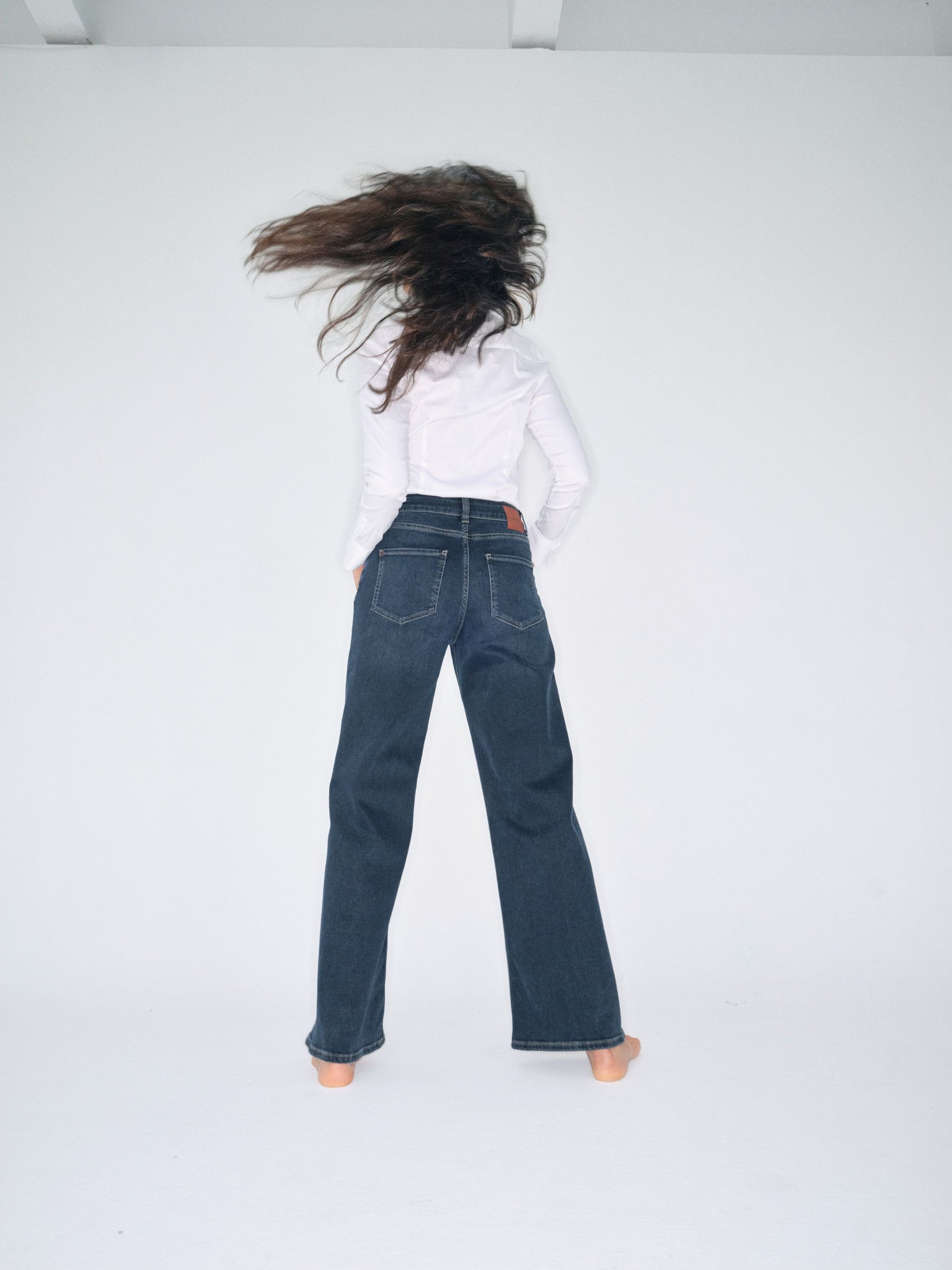 Effortless wide-leg vibes in a cool dark blue wash. High-rise fit with classic 5-pocket construction and a leather detail at the coin pocket that adds just the right touch. Throw them on with a chunky knit for lazy days, or dress them up with a glitter tank and oversized blazer when you're ready to go out. The kind of jeans that work everywhere.