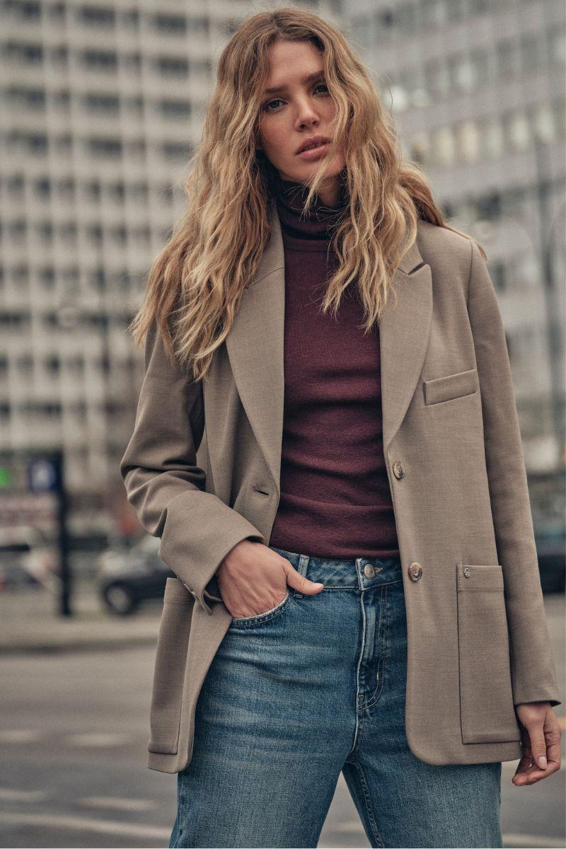 The Mos Mosh Fauna Elina Blazer, a contemporary piece that balances relaxed proportions with refined tailoring. The extended length and single-breasted front create a streamlined silhouette, while distinctive back button detailing introduces visual interest and sophistication. Functional cuffs and well-placed pockets deliver practical elegance, making this blazer equally suited to professional settings or elevated casual wear.