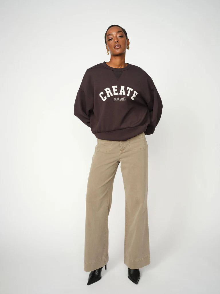 These contemporary high-rise pants balance modern aesthetics with wearable comfort. The generous wide-leg silhouette creates an effortlessly polished look, while functional welt pockets provide practical style. Pair with a fitted knit tucked at the waist and finish with ankle boots for a refined, put-together ensemble that works from day to night.