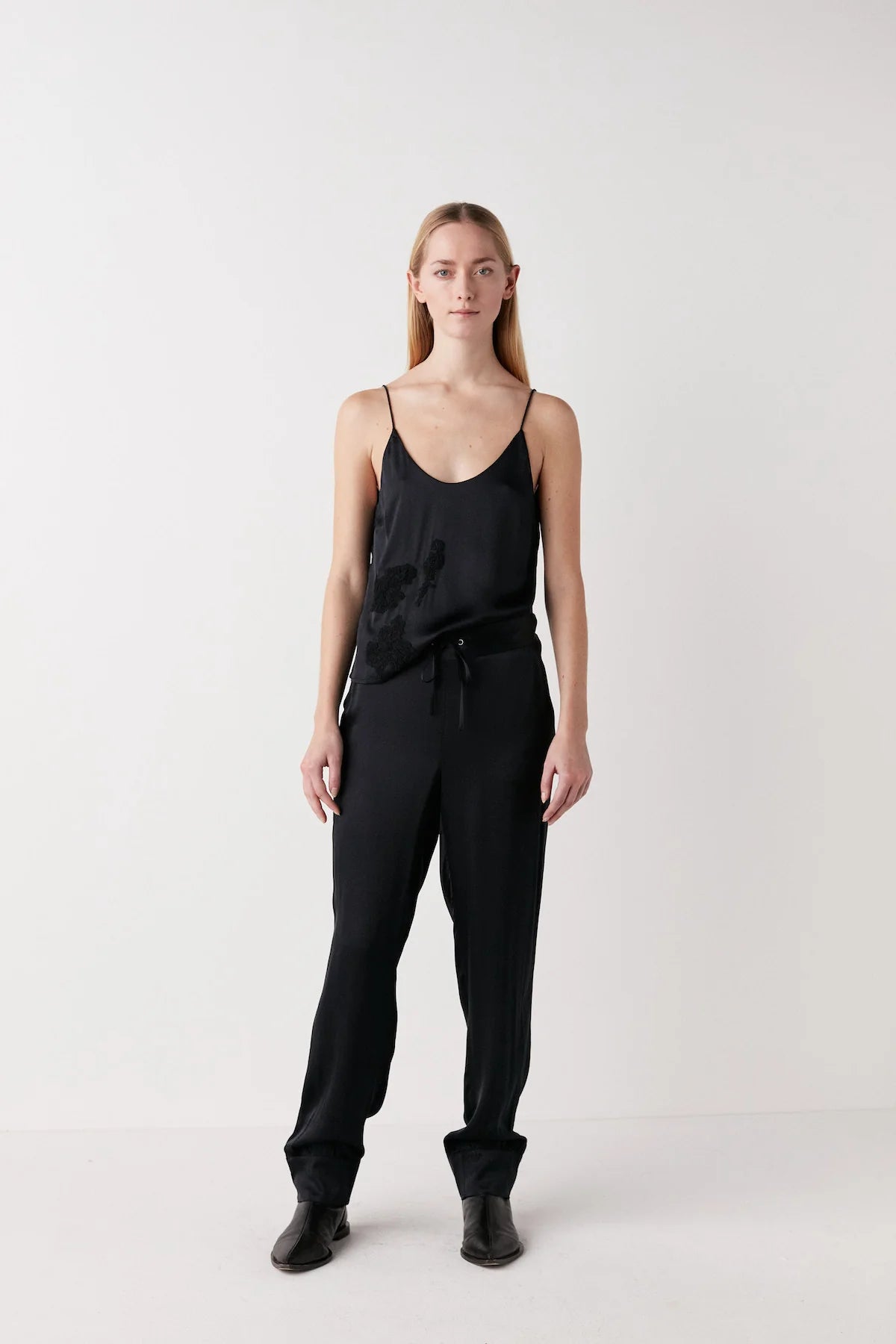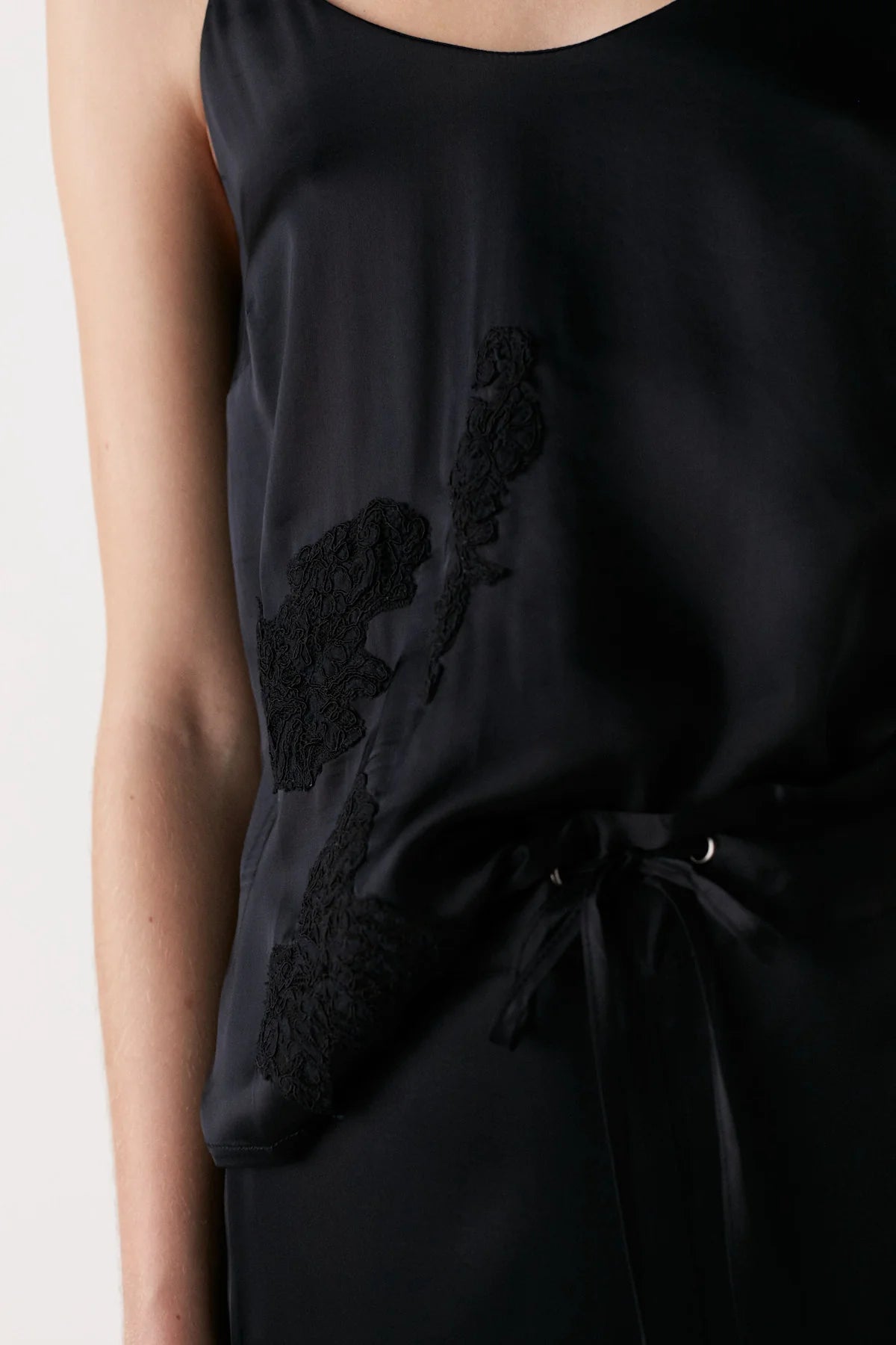 The Fatia Cami by Rabens Saloner exudes timeless elegance and sophistication. Made with delicate lace and featuring intricate placement details, this top adds character to any ensemble. Its fitted silhouette, round neck, and spaghetti straps make it a versatile option, perfect for pairing with seasonal colors and prints. Crafted from a light, silky fabric in China, this top is the epitome of luxurious style.