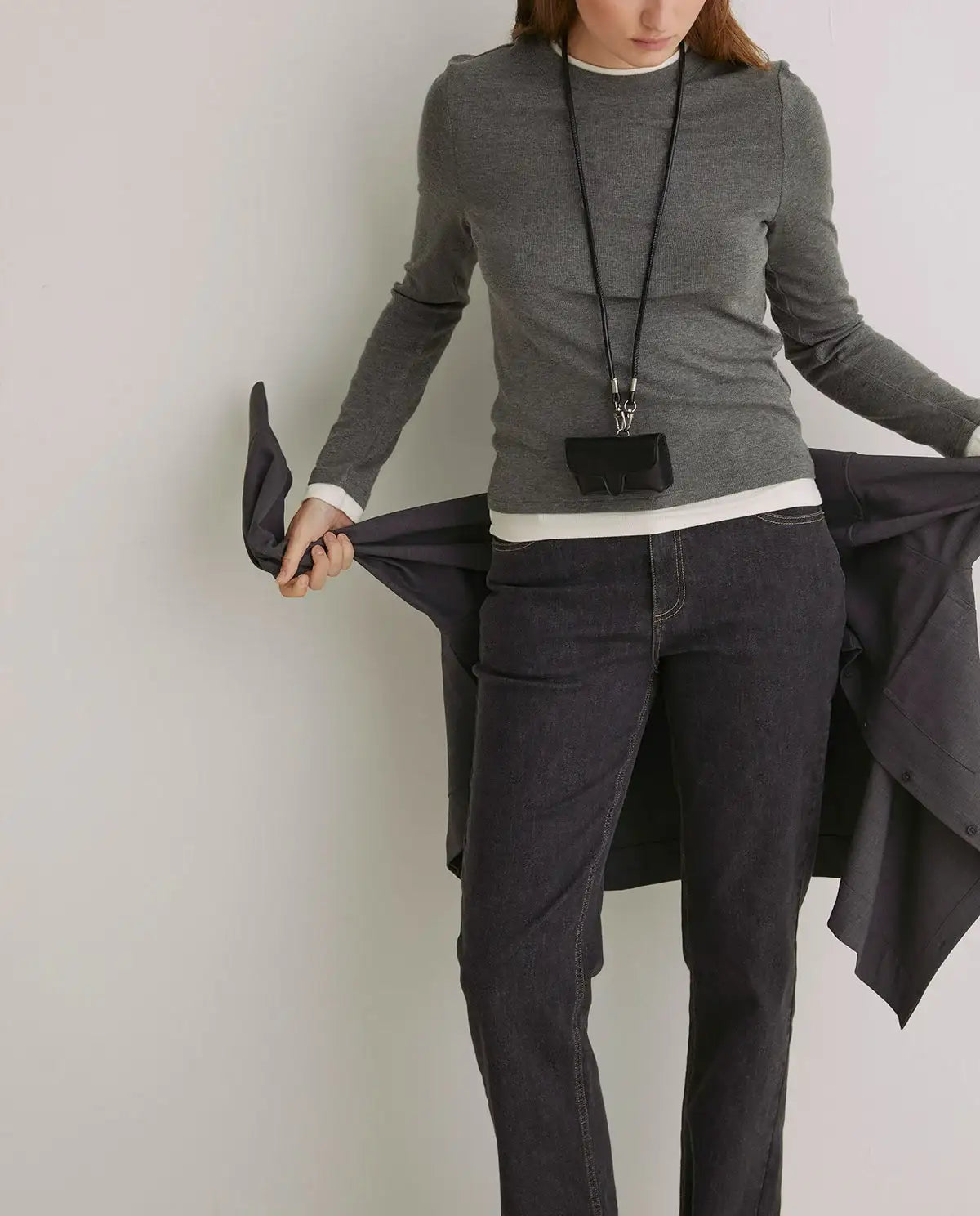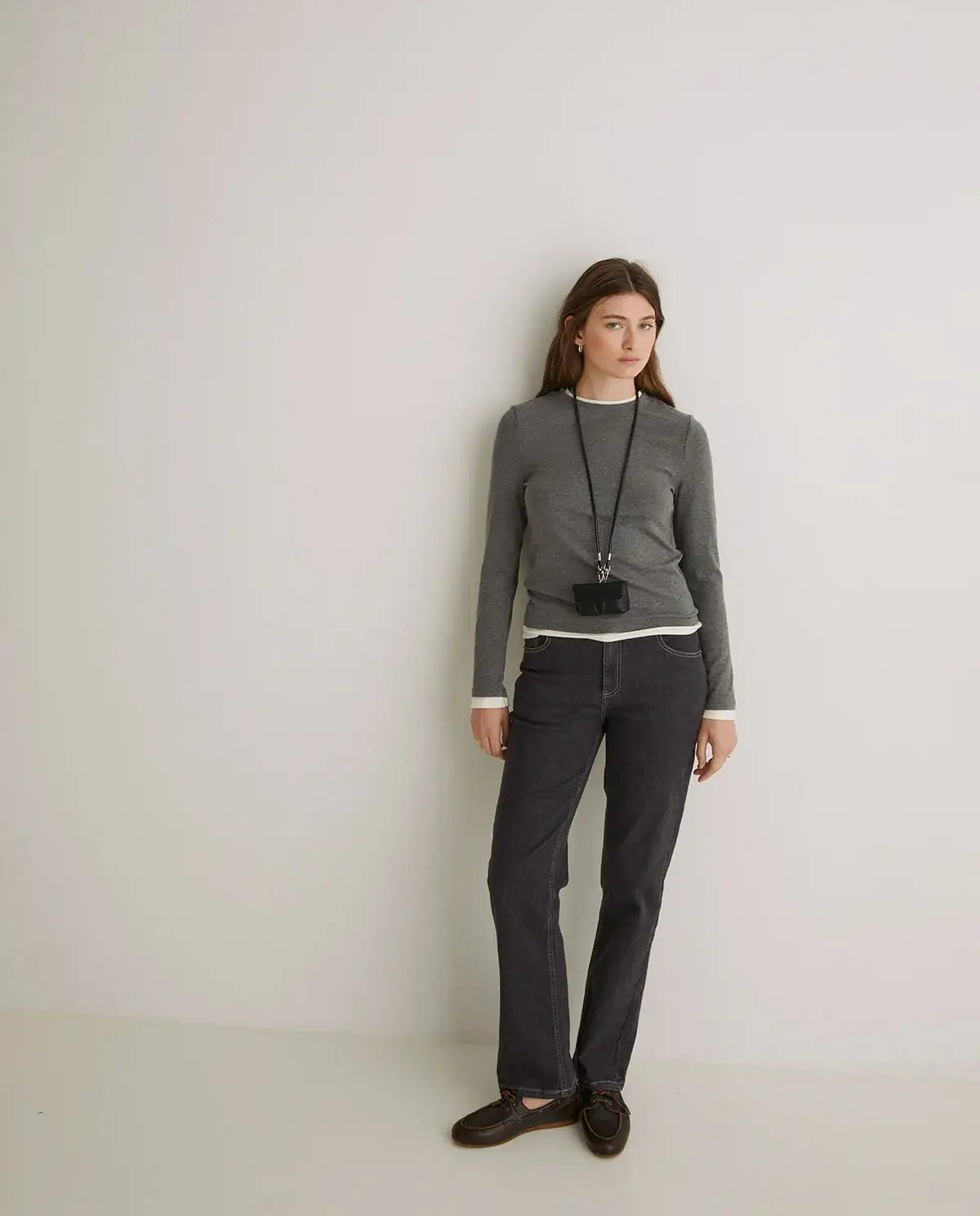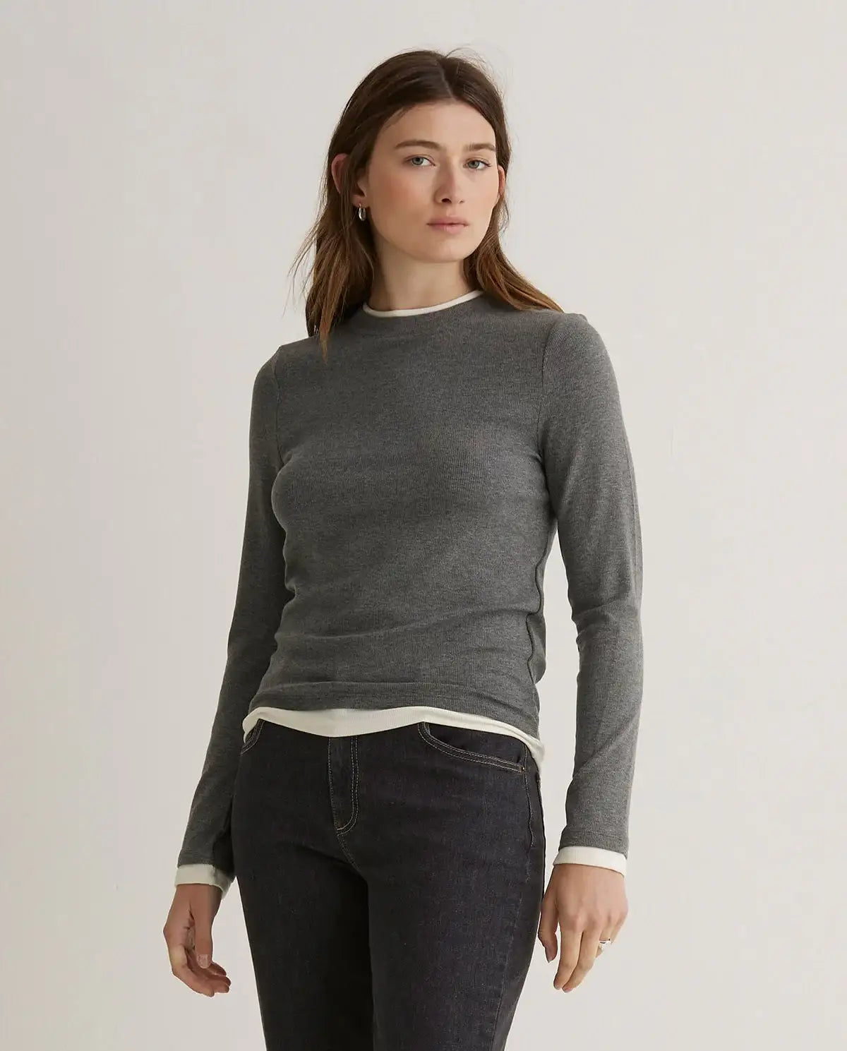 Effortless layered tee that works hard for your wardrobe. The double-ribbed texture adds visual interest while the viscose-wool blend keeps things comfortable and breathable. Two-tone minimalist design pairs with everything. Regular fit, crew neck—designed to feel like your favourite piece.