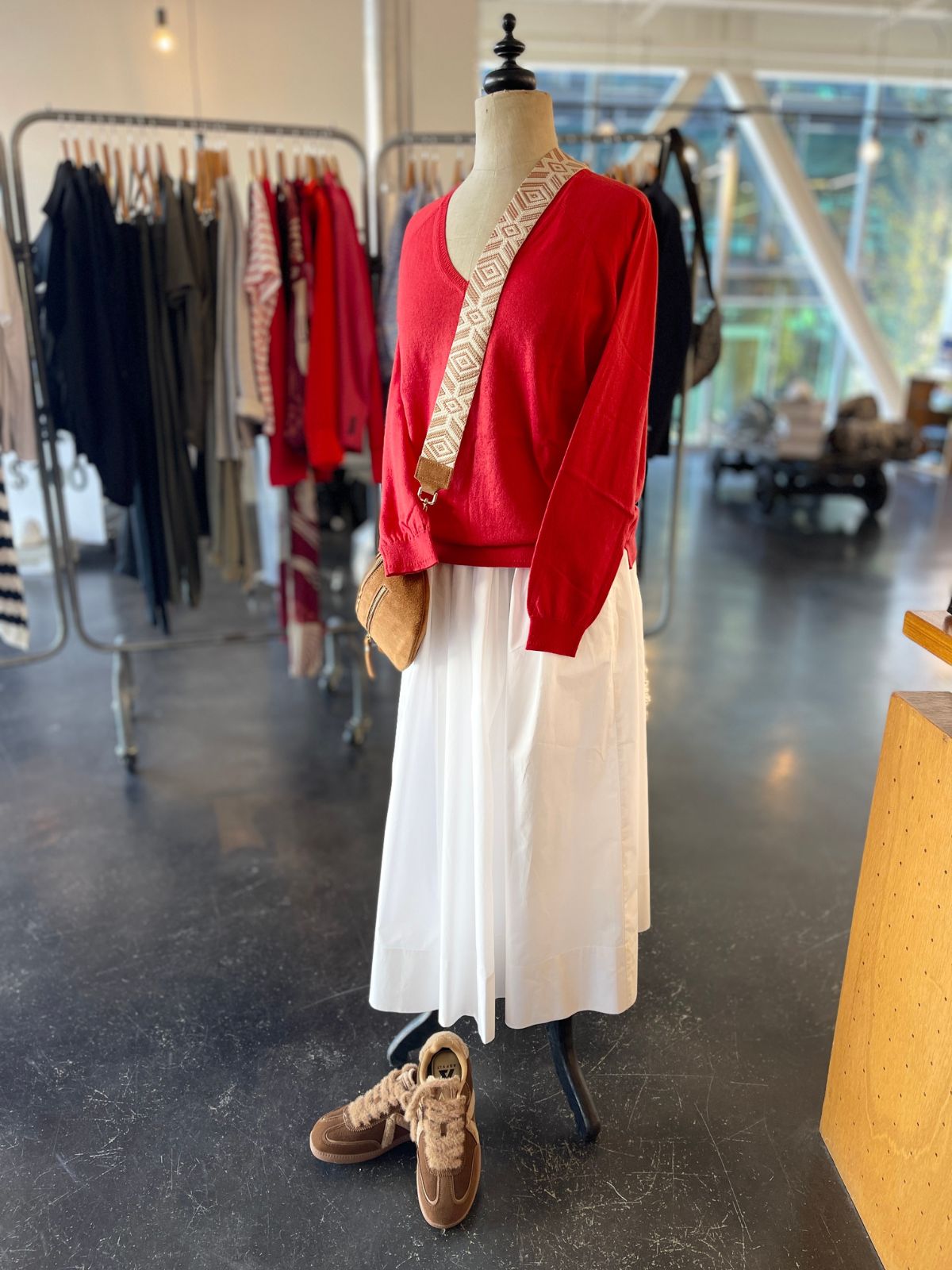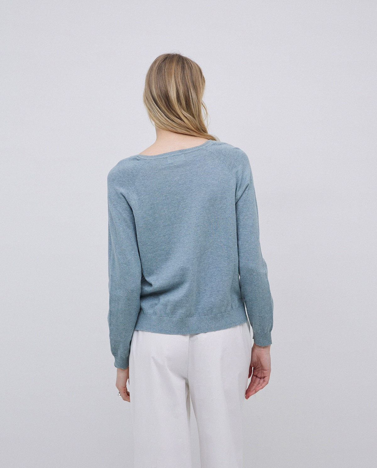 Crafted from 100% organic cotton, this jumper features a straight silhouette with a V-neckline and long sleeves and includes side slits at the hem for added comfort and style.